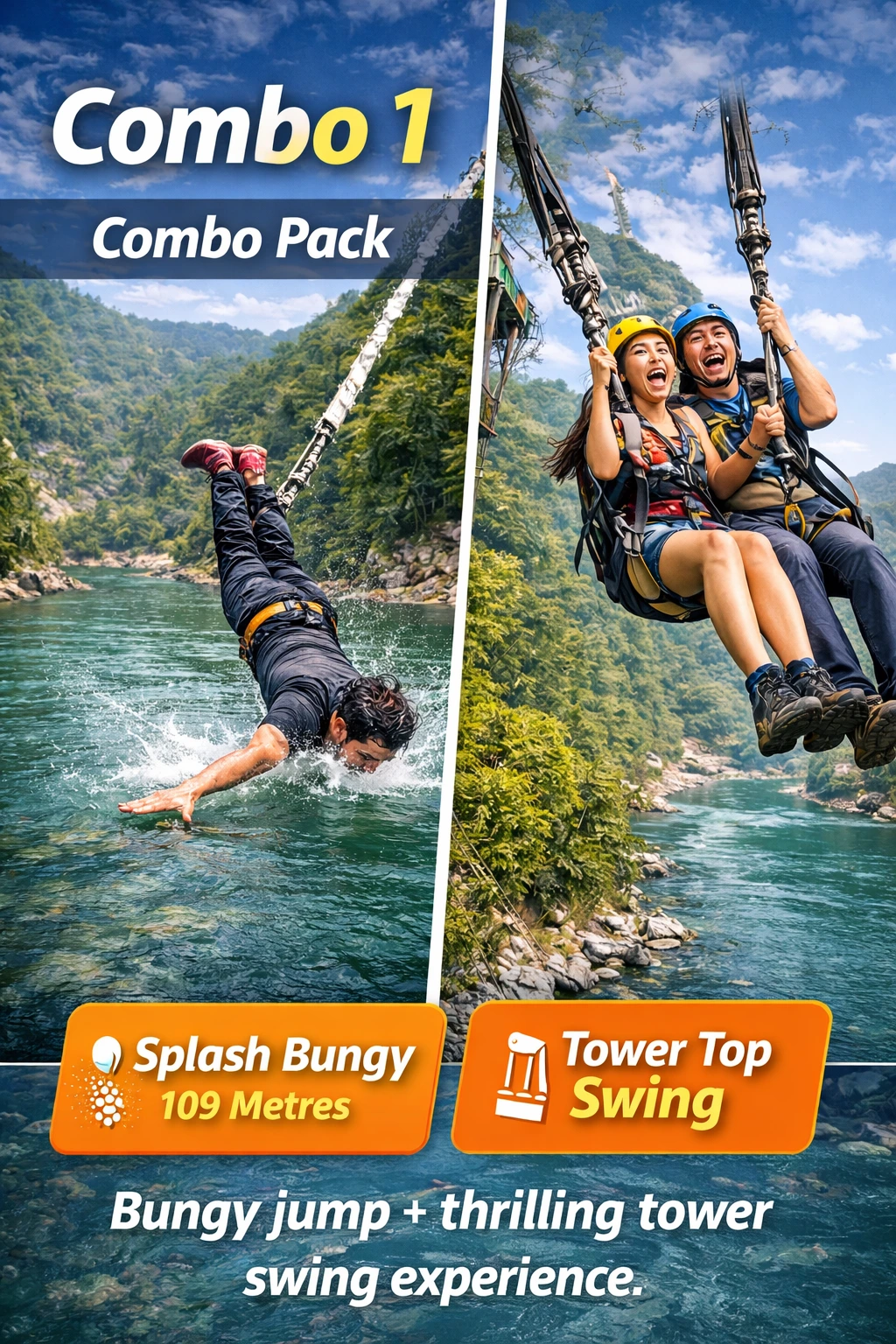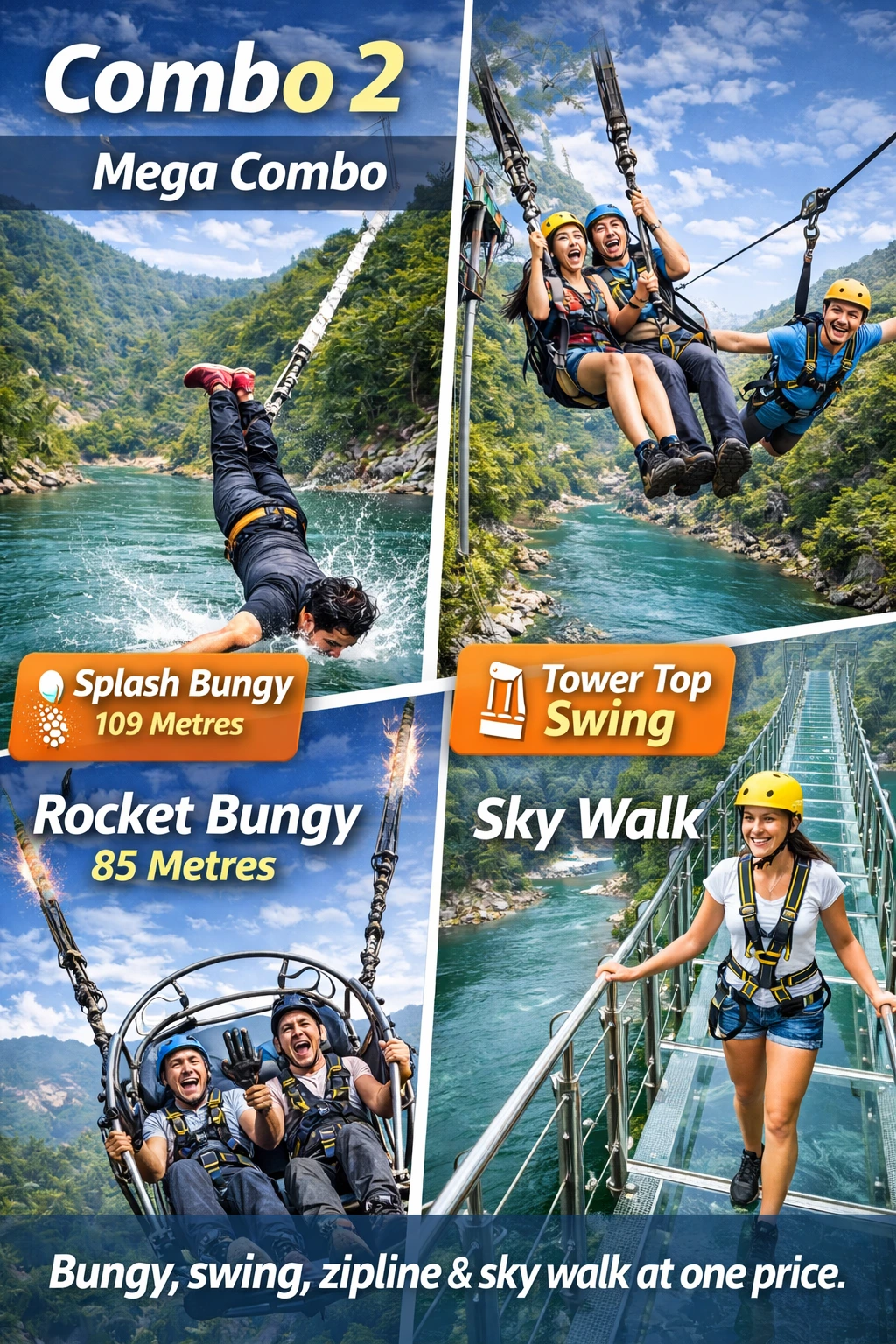 Bungee + Zipline + Giant Swing. The ultimate adrenaline package.